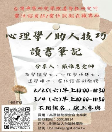 推廣教育中心/神學系也備妥了扎實的信仰課程,不管是靈性培育、家庭親密關係、信仰造就、音樂技巧、基督徒與社會倫理等,都有完備的課程設計,讓教會的弟兄姐妹的信仰能與生活結合,有更深的栽培。我們深信,當傳道人與教會的信徒一起努力在信仰上向下扎根,必能帶動教會有好的、正向的發展。