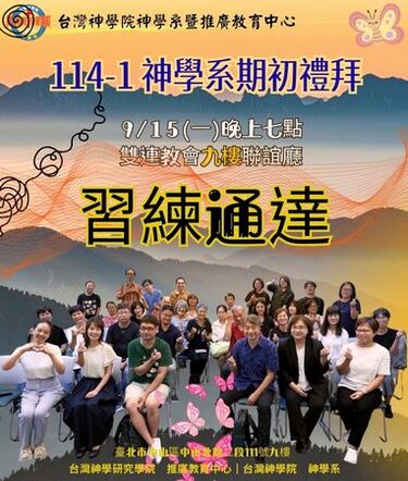 9/15 神學系於 9 月 15 日(星期一)晚上 7 點 在雙連教會九樓交誼廳舉行開學禮拜。本次特別邀請聯合差傳祕書長夏超凡牧師,以《歌羅西書》一章 26–27 節為經文,以「習練通達」為主題的勉勵大家。在這個快速變動的世代,我們更需要不斷裝備自己,好隨時與神同工,忠心完成祂的託付。此次聚會中,有來自不同宗派與教會的同工,雖背景各異,卻都懷抱共同的渴望:透過神學院的學習與裝備,使自己更合適地為主擺上。誠摯邀請您加入神學系的課程,在學習中扎根信仰,在事奉中活出呼召。 |