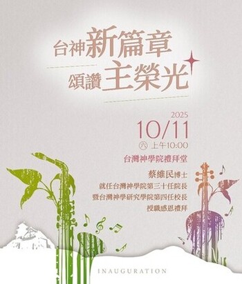 我們誠摯邀請您,於2025年10月11日(六)上午十時,在台灣神學院禮拜堂一同參與