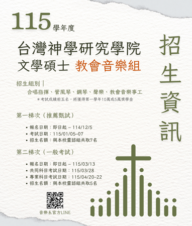 請推薦有志服事的教會弟兄姐妹來台神受裝備,造就培養優質神國工人 |