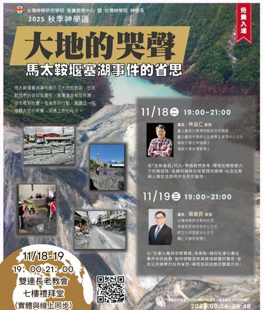 馬太鞍堰塞湖事件揭示了大地的脆弱,也挑戰我們的信仰與責任。 |