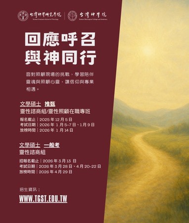 每年這個時候,也正好是台灣神學院的奉獻主日。思索生命裡奉獻的真義,也許是一場回望——回望我們在信仰中如何被塑造、如何被呼召。奉獻是一種信任,加上感恩,加上行動;是一份願意將自己再次交在上帝手中的回應。