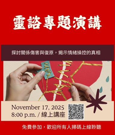 今年從台神靈諮畢業,帶著陪伴的心志持續在關懷與傾聽中與人同行。 |