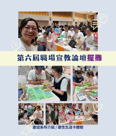本系師生於「職場宣教論壇—壓力山大 VS. 恩典夠大」(和平教會)設攤參展,活動圓滿落幕!感謝主,攤位人潮絡繹不絕,不分年齡層的參與者都熱情體驗靈性生涯卡,透過互動認識自我、思考信仰與呼召,氣氛熱絡、回應熱切。此次擺攤除了讓更多人認識台神靈性諮商與在職專班的專業培育外,也透過平易近人的牌卡媒材與人互動。願主預備更多願回應呼召、投身靈性關懷與助人工作的工人,在職場與生命中見證祂的恩典。