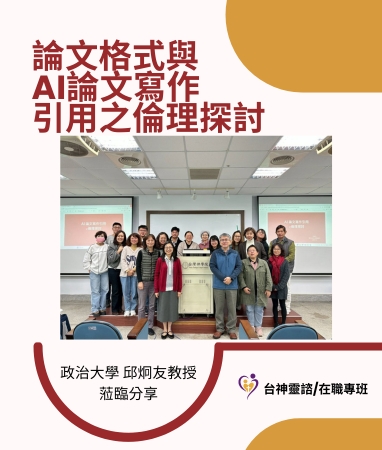 靈諮特別邀請國立政治大學圖書資訊與檔案學研究所邱炯友教授蒞校,為同學帶來「論文格式與 AI 論文寫作引用之倫理探討」的精闢分享。邱教授以豐富的研究經驗,清楚解析芝加哥格式的核心精神與常見錯誤。更重要的是,教授帶領大家一同思考,在 AI 工具快速發展的今日,學術引用、研究方法與誠信倫理如何被重新詮釋與看見。這兩週的系列講座,不僅加深同學在格式與寫作上的能力,也幫助大家更敏銳地看見科技變遷下的學術責任。