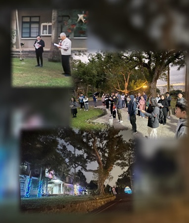 在夜幕低垂時分,教職生們齊聚連辦前廣場,舉行「聖誕點燈祈禱會:在待降的期盼裡」。本次聚會由蔡維民校長主禮,學務長王榮信牧師帶領宣召與讀經。全體會眾透過啟應文宣告希望,並由學生、職員、老師輪流唱詩歌《以馬內利,懇求降臨》,在優美的歌聲中安靜心靈,將期末的忙碌與重擔交託。隨後,蔡維民校長點亮聖誕主燈,象徵基督真光照亮校園每一個角落。聚會尾聲,眾人互道:「願基督的真光溫暖你的心」,在溫馨的祝福中一同預備迎接聖誕的喜樂。