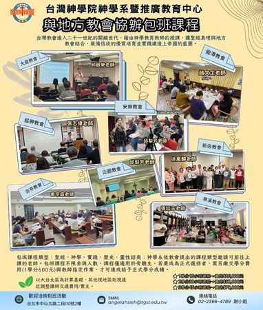 神學系持續與各地教會攜手合作,根據牧養上的實際需要,安排資深教師親自授課,將專業而扎實的神學教育帶入地方教會。這些課程不僅幫助弟兄姊妹在靈命上得以造就,也為教會團隊的事工推動與建造注入新的動力。課程主題涵蓋廣泛,包括聖經詮釋、信仰實踐、領袖培育、家庭與婚姻等面向,期盼能協助教會在全人牧養上更加完整。課程中,學員不僅能直接與老師互動,提出問題與討論,也能彼此交流,透過分享信仰經驗共同成長。 |