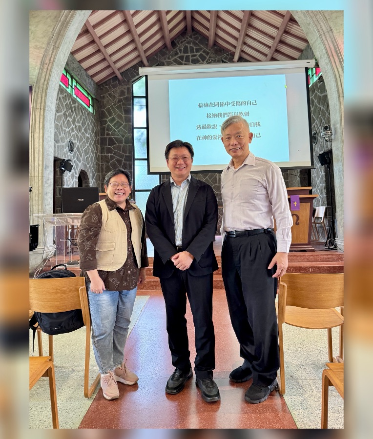 感謝台中中會書記潘忠杰牧師(大專學生中心),中委鄭凱佳牧師(向榮教會)、陳建廷牧師(大肚教會)前來台神探望該中會神學生們,並致贈禮金。牧者們先來參加師生禮拜一起敬拜主,之後與師長、學生們一起餐敘。謝謝台中中會的關心,這份心意會化成繼續走下去的力量。願我們在不同的地方事奉,卻同在主裡彼此扶持、一起前行。