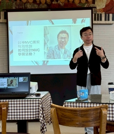 NVC團契同工培訓工作坊 1/28-29 「非暴力溝通團契(NVC)」於1/28-29舉辦同工培訓工作坊,邀請NVC講師Frankie傳道及劉劍玲傳道(2024學年道碩畢),系統性講授NVC概念與教案設計方法,並透過實作深化體驗。如NVC溝通,從觀察、感受、需求、請求等,學習如何應用在牧者家庭探訪、處理日常議題;NVC查經引導會友與經文產生真實連結。一天半的課程中,同工在真誠分享與互動裡,暫時放下慣用的理性思考,重新連結個人的感受與需求,學習聽見自己,也學習在聆聽他人中「捨己」。 |