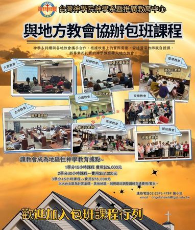 神學系為要協助教會信徒在靈性與信仰的生命培育,特別與地方教會結合,神學系邀請教師到地方教會進行現場教學,不僅可以增加學術與實踐之間的連結,還能提供一個更直接互動的學習環境。透過這樣的系統規劃,不僅能夠提升信徒的神學素養,分擔牧者在牧養事工的繁重,增進教會信徒的凝聚力和信仰的深度。 👉 歡迎洽詢02-2396-4789 謝姊妹,一同推動信仰造就與教會更新! |