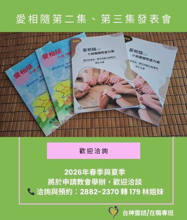 《愛相隨 第二集》延續第一集情緒陪伴的基礎,進一步帶領參與者認識自我、建立關係,並在信仰中探索生命的意義。課程涵蓋自我認識、恩賜與價值觀、性格特色,以及友誼、愛情、溝通與決策等關係議題,透過同在、傾聽、同理與覺察,陪伴群體走過真實的助人歷程,學習彼此同行。 《愛相隨 第二集、第三集》發表會將於2026年春季與夏季於申請教會舉辦,現正徵求實習與合作教會,誠摯邀請教會成為課程推展與陪伴事工的夥伴,適合青年、成人、家長及牧區小組,並可依教會處境彈性調整。 |